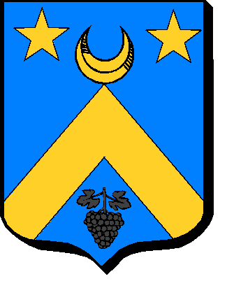 " D'azur à un chevron d'or, surmonté d'un croissant de même, accompagné en chef de 2 étoiles d'or, et en pointe d'une grappe de raisin de sable"